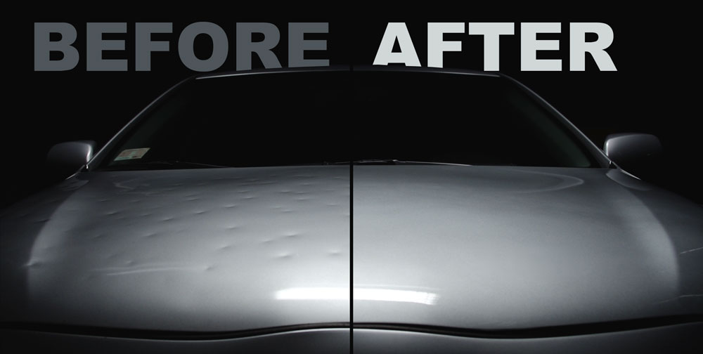 How is a dent repaired? This is accomplished by using specially designed tools to gently massage the hail dent out from beneath the vehicle panel, restoring the surface and body-lines back to its pre-dented condition. This is all done by our in-house, highly skilled and certified Paintless Dent Repair Technician.